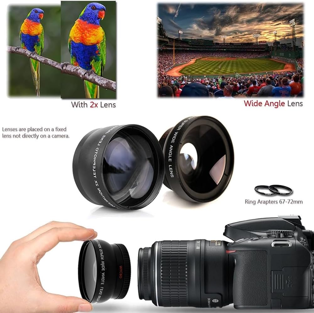 Ultimate 67mm Lens and Filters KIT Including: 67/72mm Wide Angle Lens + 67/72mm 2X Telephoto Lens w/Step-Up Ring to 72mm + 67mm Close-up Macro Filters + 67mm HD Filters + 67mm ND Filters + More