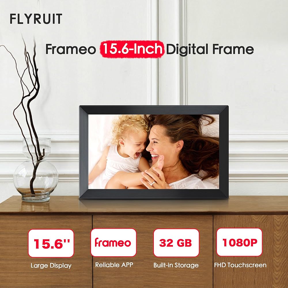 - 15.6 '' Frameo WiFi Digital Picture Frame مع 7 "ساعة رقمية مع تاريخ ووقت للمسنين