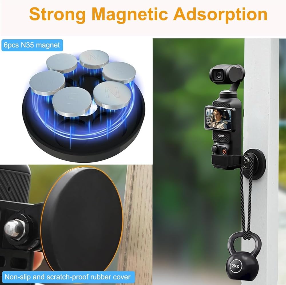 Non-slip and Scratch-proof Design: The heavy-duty magnetic mount is wrapped by a full-soft rubber cover, which improves the stable suction and prevents the magnet from moving on the smooth surface while protecting the paint surface of the car. The osmo pocket 3 car mount is compact and lightweight design makes it easy to carry wherever you go for photography or videography.