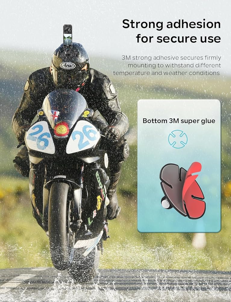 【Strong Adhesion】Engineered with a high-strength flexible adhesive layer that conforms firmly to curved surfaces like helmets. Stays secure through shakes, impacts, and all weather conditions—capture smooth footage with confidence.