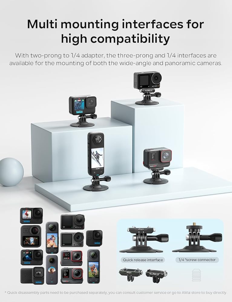 【Multi Mounting Interfaces】Includes a standard action camera screw thread and a 1/4'' screw conversion adapter, making it versatile for attaching a wide range of cameras and accessories.