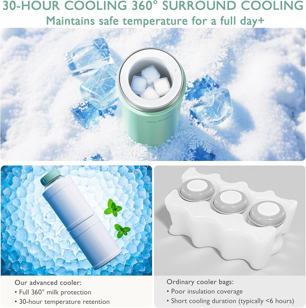 تبريد 30 ساعة: أنبوب التبريد المتقدم بالكامل يحافظ على حليب الأم طازجًا لمدة 30 ساعة. الحفاظ على نضارة حليب الأم ومنع فقد المغذيات أثناء الأنشطة الخارجية.