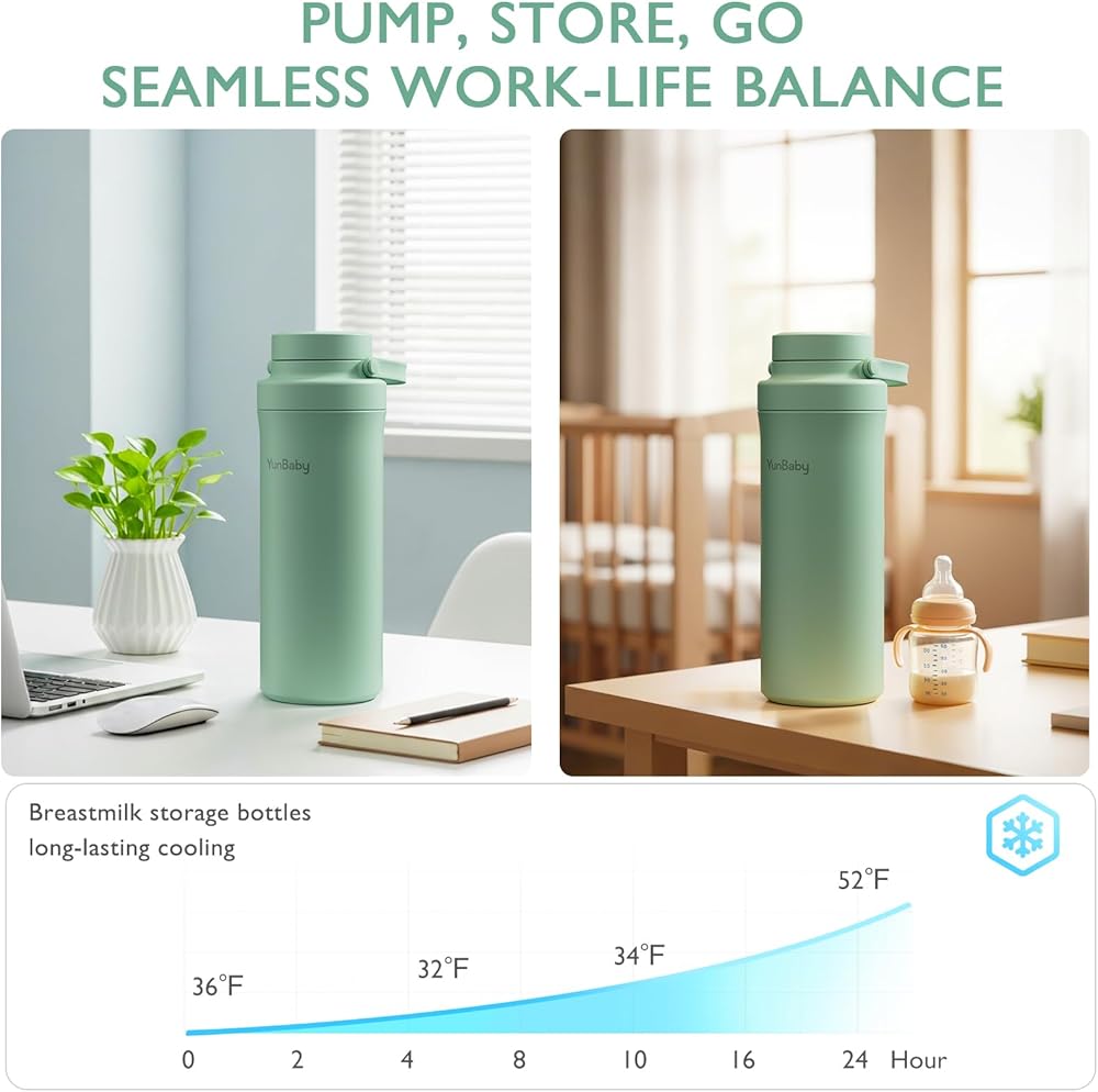 22oz المحمولة ، تبريد حليب الأم ، مغير اللعبة مع حزمة ثلج بارد 360 درجة لمدة 30 ساعة ، ورضع الطفل الرضاعة الطبيعية مع زجاجات 2 مساءً لتخزين حليب الأم (أخضر)