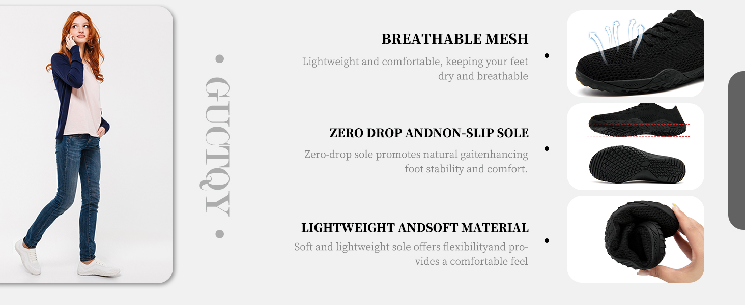 • أحذية حافي القدمين في فائق الإضاءة: مصممة مع مواد خفيفة الوزن الحد الأدنى لتكرار حركة حافي القدمين الطبيعية ، مما يوفر راحة معززة للارتداء طوال اليوم أثناء السير أو السفر أو التنقل اليومية.