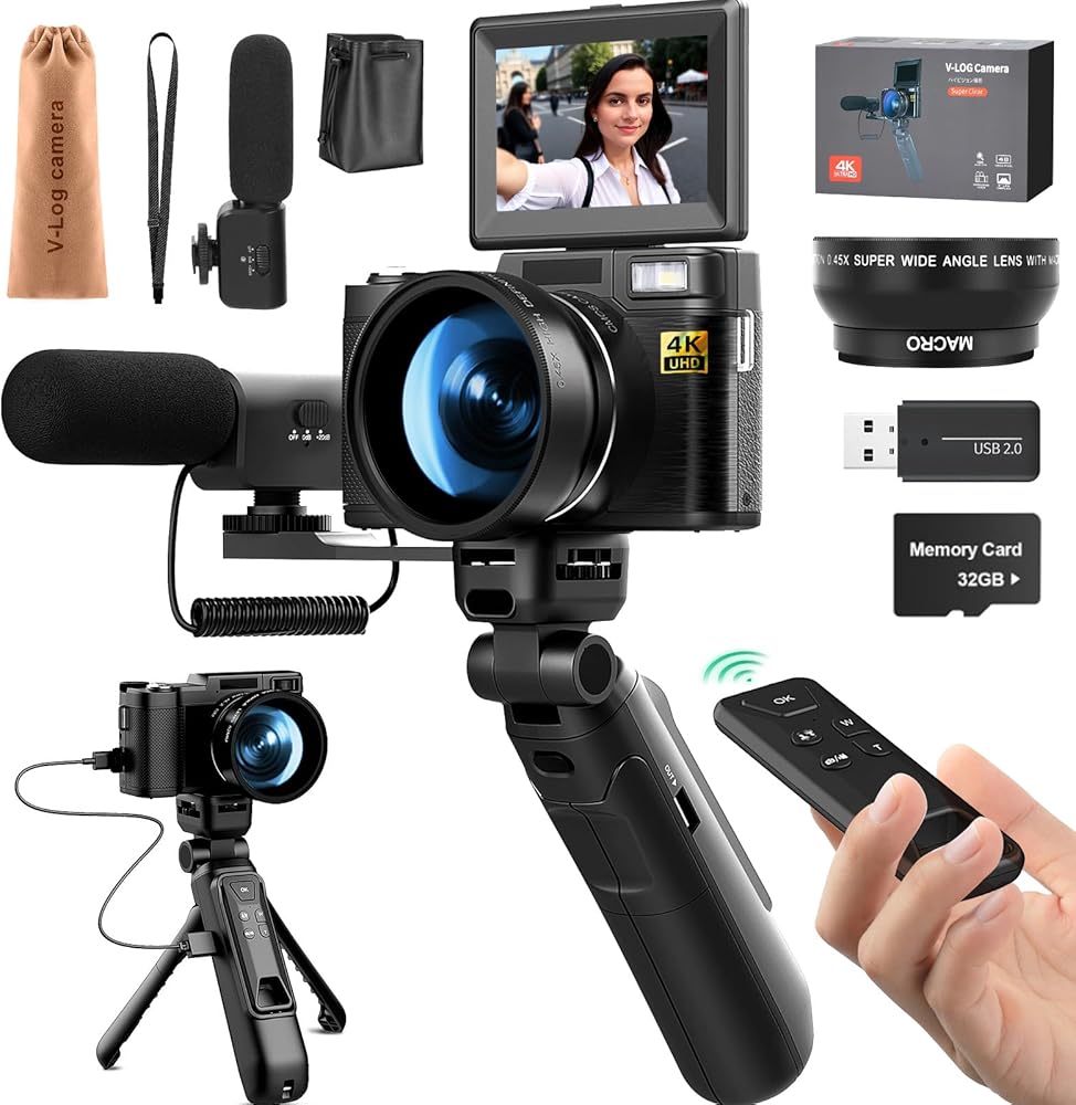 【Perfect Gift for Creators】Compact, lightweight, this flip screen digital camera is the perfect gift for teens, travelers, friends, families, or content creators. Enjoy bonus accessories: Macro & wide-angle lens, external microphone, storage bag, and 2 extra batteries. Content Creator Bundle make vlogging more fun!