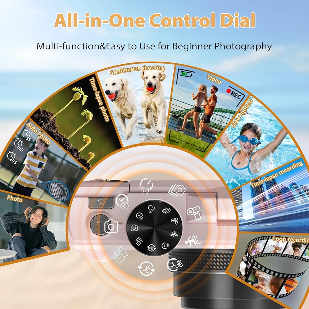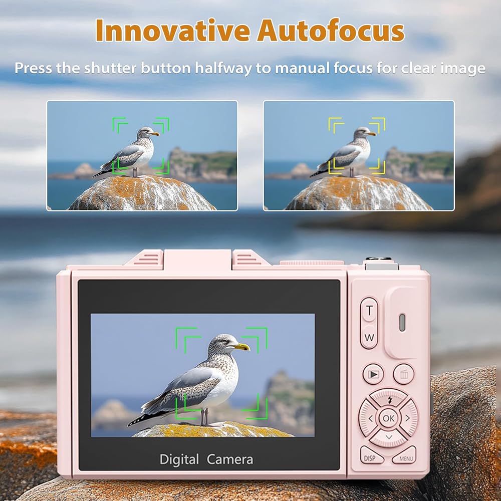 【64MP High-Resolution Photography with Autofocus Function】 This 64MP digital camera offers high-resolution images, perfect for beginners looking to capture clear and sharp photos. With autofocus technology, it simplifies the process of getting the perfect shot,Whether you're capturing dynamic scenes or everyday moments, this camera makes photography easy, allowing you to focus on creativity without worrying about focus issues.