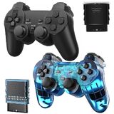 Degulan Wireless Controller Compatible with PS-2 Console, Remote Gamepad for Play 2 (ClearRed and ClearBlue)