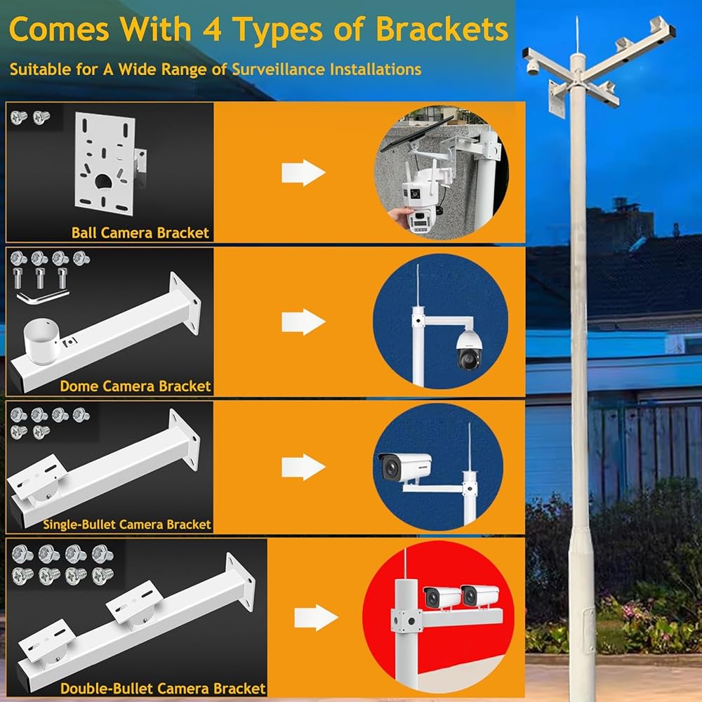 Concerned about the height of your security camera installation? Finding outdoor surveillance setup inconvenient? This surveillance pole and bracket set is designed to address these challenges effectively.