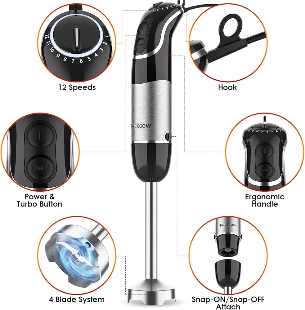 تصميم السلامة - تتميز عصا المزج بتصميم ختم متعدد الطبقات يمنع السائل من العودة إلى المحرك ، مما يقلل من خطر تراكم البقايا. يسمح ختم المطاط الداخلي بتنظيف سهل بقطعة قماش مبللة. للحفاظ على سلامة المحرك ، يرجى تجنب غمره في الماء أو وضعه في غسالة الصحون.