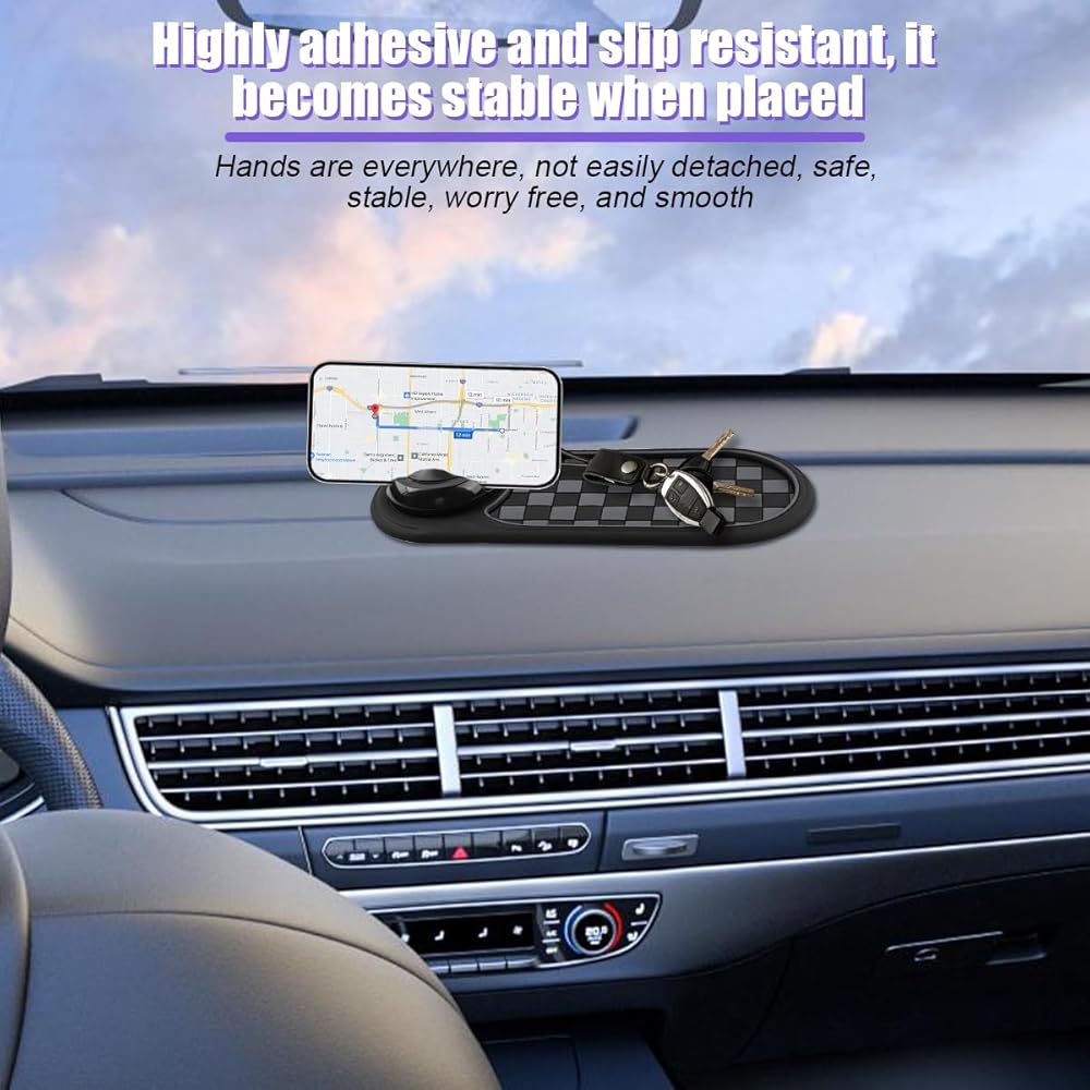 وسادة مضادة للانزلاق متعددة الوظائف ، 3 في 1 حصيرة لوحة مركبة غير قابلة للدوران مع حامل للهاتف ورقم وقوف السيارات المؤقت ، وسادة تخزين اندفاعة للأداة الرئيسية ، ملائمة عالمية (رمادي/أسود)