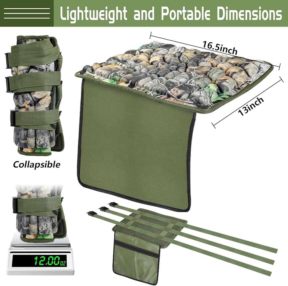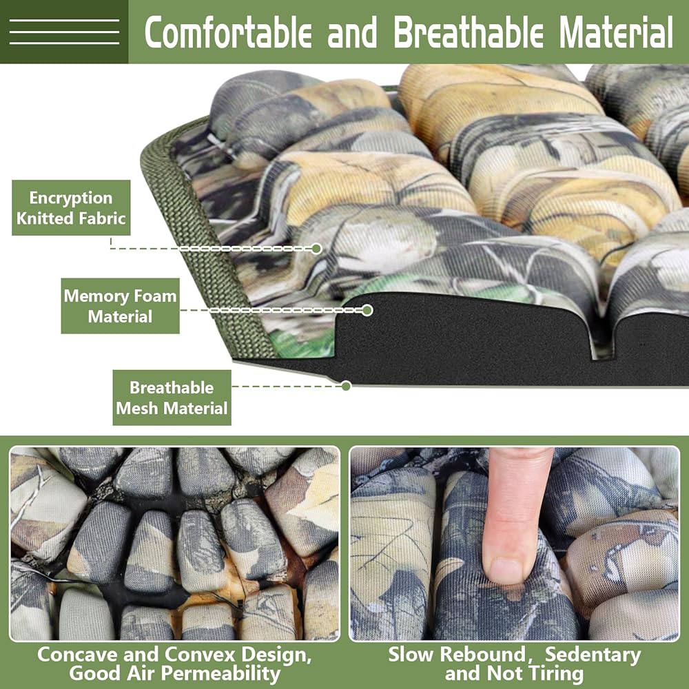 Upgrade Memory Foam Cushion: Made of rebound memory foam and high-quality close-woven fabric, our treestand replacement seat will reduce the pressure on various parts of your body and bring you a soft and comfortable hunting experience. With concave and convex design, the hunting seat pad can enhance breathability, suitable for all seasons.