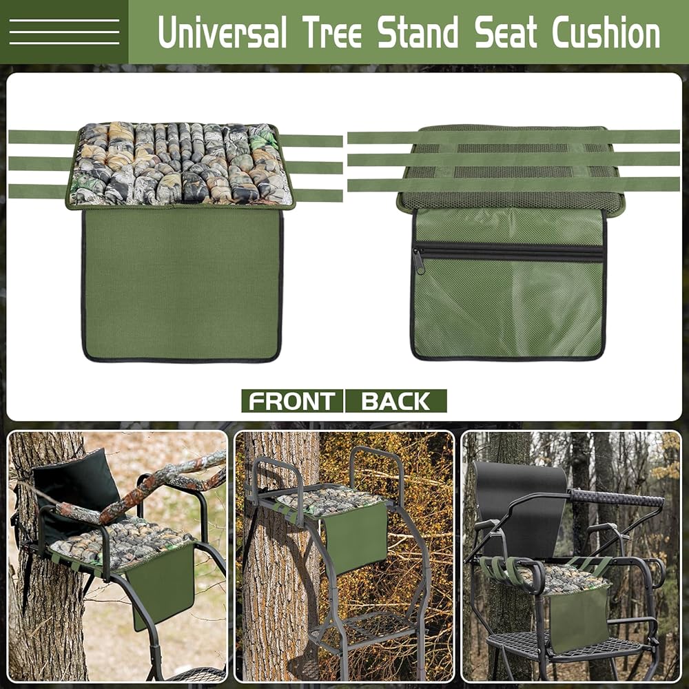 Designed with Pocket: Our universal tree stand seat replacement for deer hunting is equipped with a large storage pocket, and the size of pocket is 15 x 11.8 inches,which convenient for you to store hunting accessories. The inward-facing zipper opening is more rainproof and has better concealment.