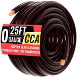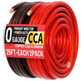 0 مقياس 25 قدمًا كل سلك CCA الأسود/الأحمر ، الجهد المنخفض للسيارات أو كابل الأرض ، كابل البطارية ، 0AWG ، صوت السيارة ، RV ، طاقة مكبر للصوت ، مجموعة الأسلاك أمبير ، سترة شفافة
