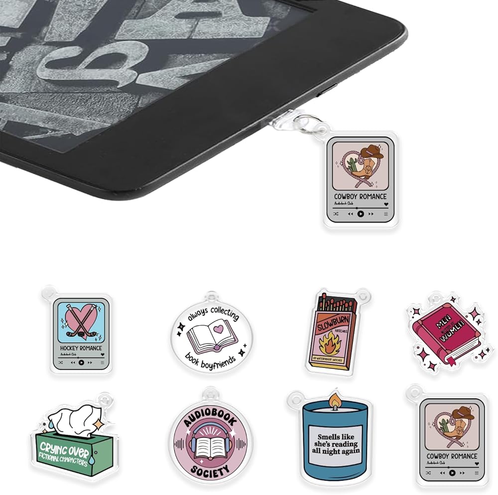 Add a whimsical touch to your e-reader with these charming Type-C port dust plugs featuring adorable book-themed designs. This set of 8 decorative charms includes sweet motifs like cherries with bows, cute ghosts, frogs, and heart-shaped designs that celebrate the joy of reading. Each charm is crafted with attention to detail and features vibrant colors in pink, blue, and other playful hues. These dust plugs are specially designed to fit snugly in Type-C charging ports while remaining compatible with most protective cases. Perfect for personalizing your e-reader, tablet, or smartphone, these accessories make thoughtful gifts for book enthusiasts, students, teachers, or anyone who loves to add a dash of personality to their digital devices. The charms insert easily and provide reliable port protection when not charging. Express your love for reading with these delightful accessories that combine functionality with bookish charm.