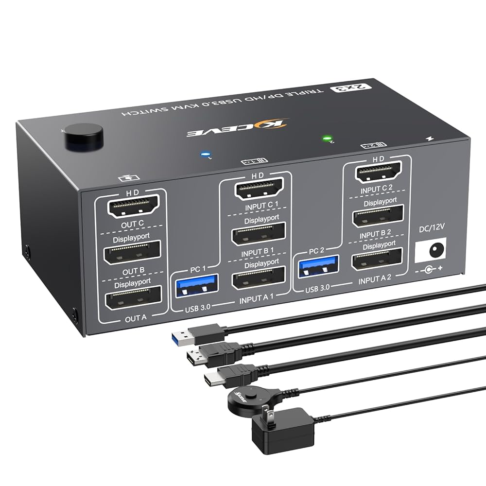 【KVM Switch 3 شاشات 3 أجهزة كمبيوتر】 2displayport HDMI USB3.0 KVM تتيح 3 أجهزة كمبيوتر لمشاركة 3 شاشات و 4 أجهزة USB3.0 ، مثل الماوس ولوحة المفاتيح و Printer.Ivaleal مع المستخدمين 3 أجهزة كمبيوتر ، بسرعة بين 3 أجهزة كمبيوتر مع مجموعة واحدة من لوحة المفاتيح ، وتكاليف فعالة لإنقاذ الفضاء ، والتحسن في العمل.