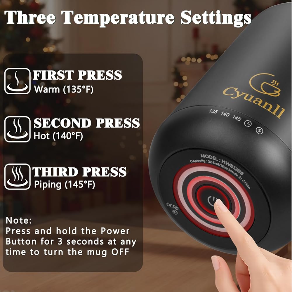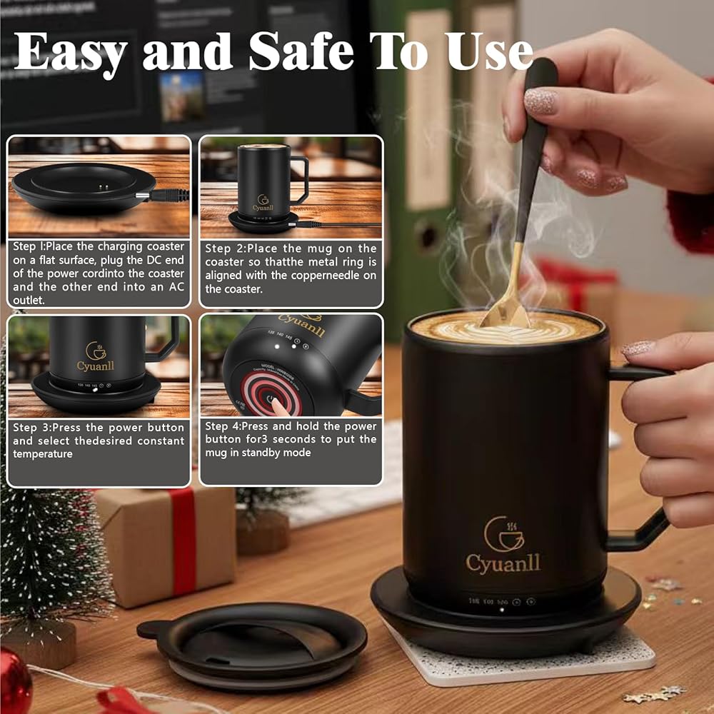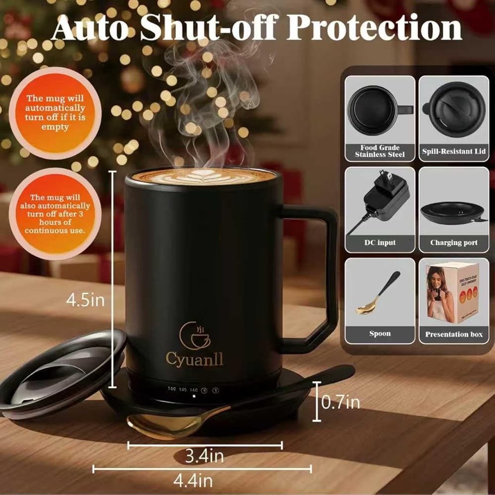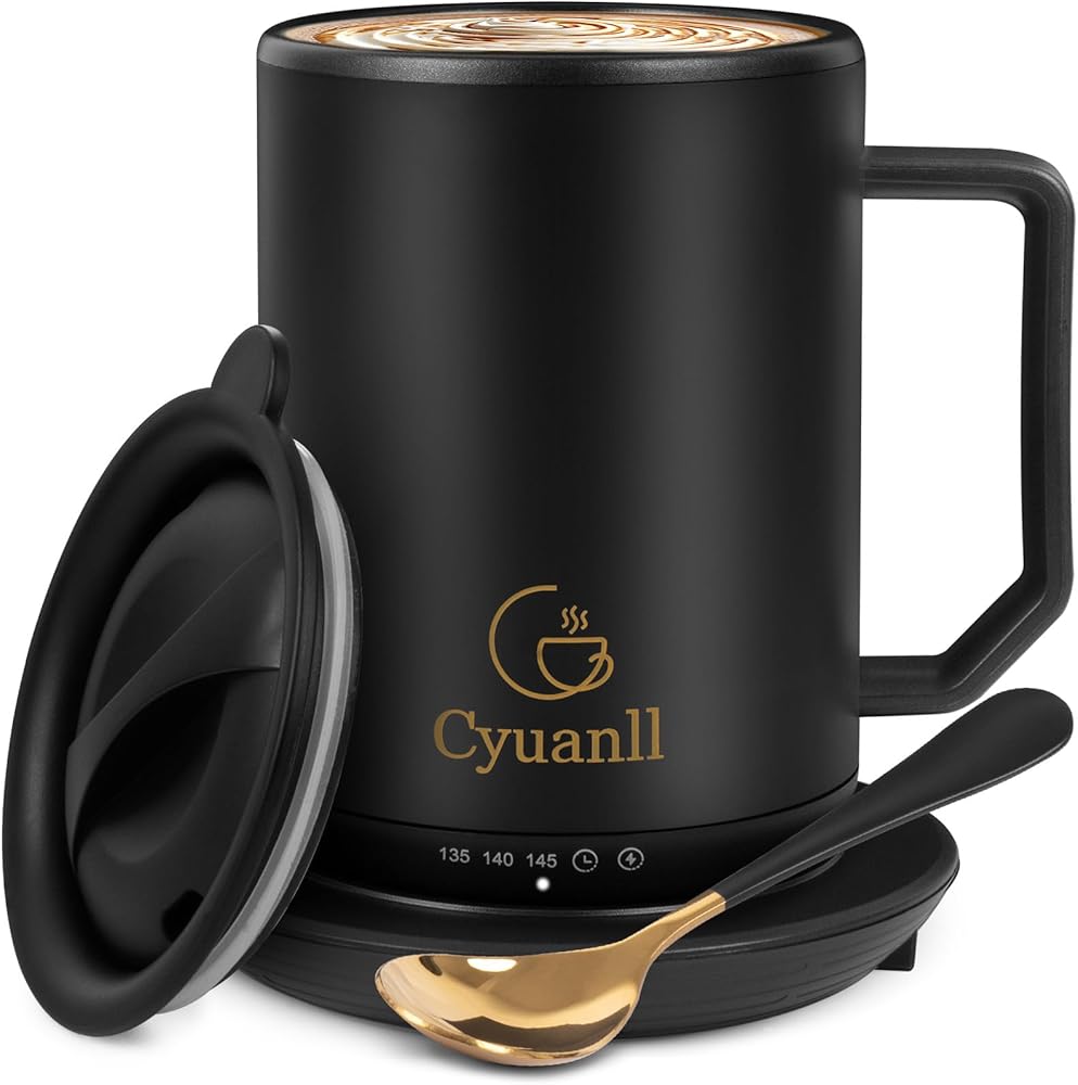 2025 فنجان قهوة مدفأت بالترقية - يمكنك ضبط 3 درجات حرارة مباشرة من زر اللمس على فنجان القهوة الذكي Cyuanll ، واختر الماء الدافئ (135 درجة فهرنهايت) ، أو الماء الساخن (140 درجة فهرنهايت) أو أنابيب ساخنة (145 درجة فهرنهايت) للاستمتاع بساعات من الوقت الدافئ. غطاء الانزلاق المشمل يبقي مشروبك أكثر سخونة ويمنع الانسكابات.