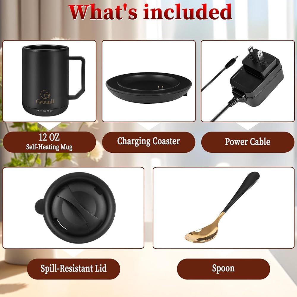 تم ترقية القدح القهوة المسخنة مع وظيفة الإغلاق التلقائي ، والقدح في درجة حرارة التسخين الذاتي مع الغطاء والملعقة ، والقدح الذكية أكثر دفئا لتناول القهوة ، و 3 بيئات درجات الحرارة ، والهدايا للرجال والنساء (أسود 12 أوقية)