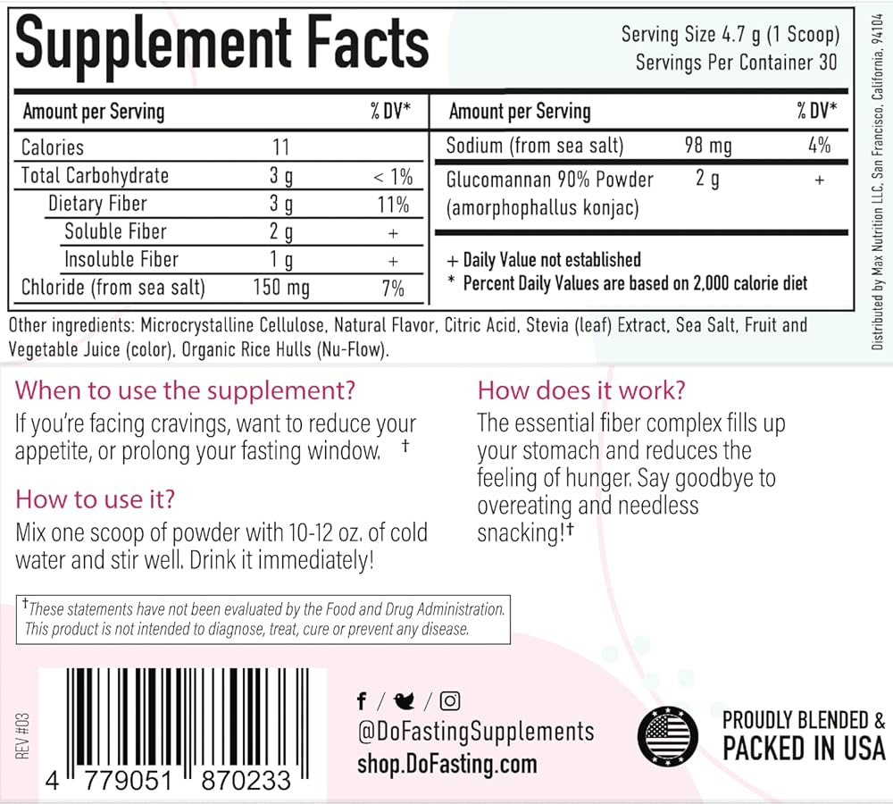 اشعر بالشبع بشكل أسرع - حافظ على ثباتك مع أهدافك في إدارة الوزن مع مجمع الألياف الأساسية DoFasting. تحتوي هذه التركيبة المصنوعة من الجلوكومانان من جذر الكونجاك على ألياف فائقة تتوسع في الجهاز الهضمي لتجعلك تشعر بجوع أقل.