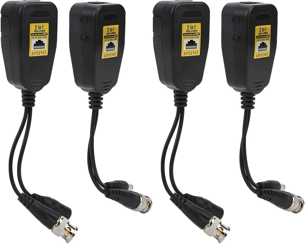 Amako 4PCS HD Video Balun مجموعة لـ CCTV ، CVI TVI AHD CVBS ، 12V 48V ، حماية تيار عابرة الرعد ، ملحقات نظام أمن الإسكان ABS ABS