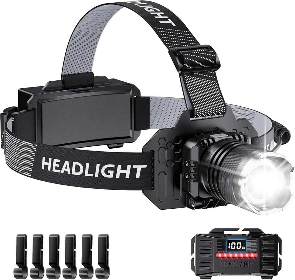 1. تضيء ليلا -2000 لومن ، حزمة 1200 متر: يقدم هذا المصابيح الأمامية شمعة 2000 فائقة الضعف مع مسافة شعاع تصل إلى 800 متر. سواء كنت تتجول في مسار مظلم أو تعمل في ضوء منخفض أو التعامل مع حالة طوارئ على جانب الطريق ، فإن مصابيح الرأس هذه تقود نموذجًا ساطعًا قابلاً لإعادة الشحن يبقي طريقك واضحًا وآمنًا