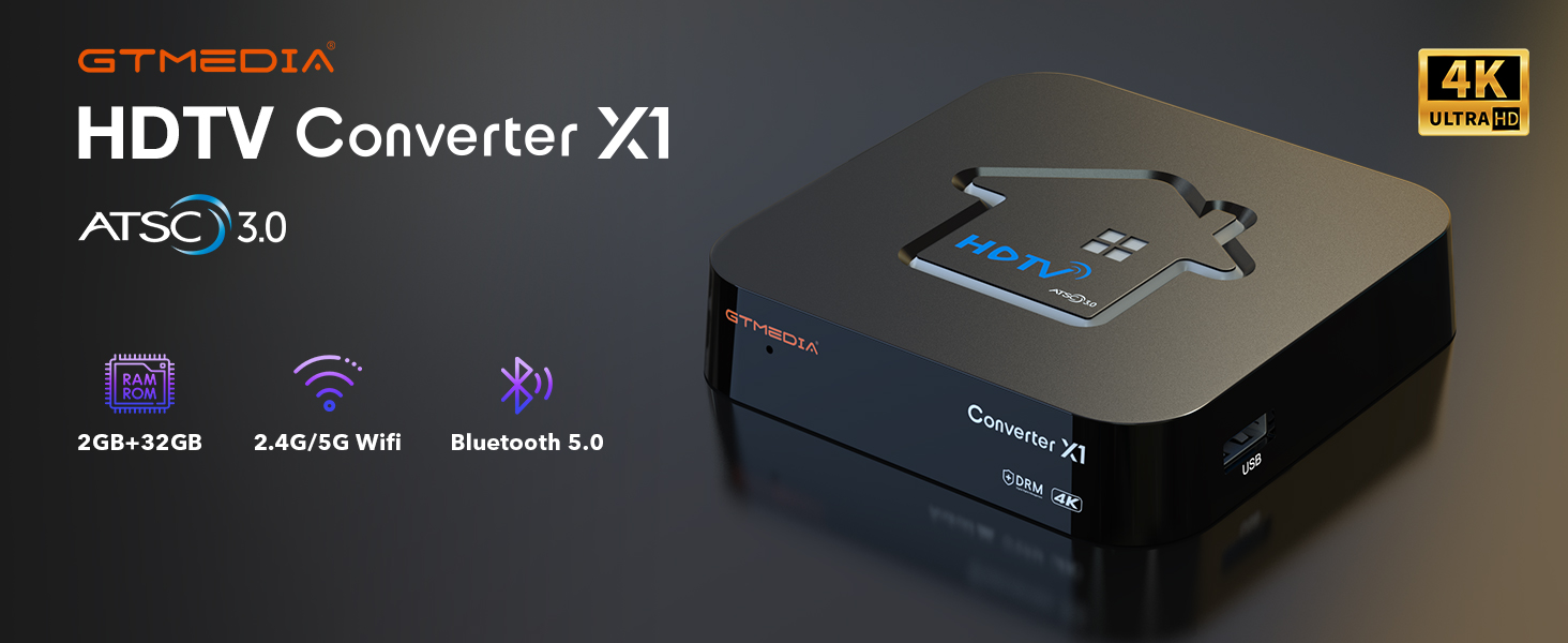 GtMedia Converter X1 Ultra-HD TV Texorder & USB Recorder-ATSC 3.0/1.0 + Clear QAM ، Wi-Fi Dual-Band ، 4K@60