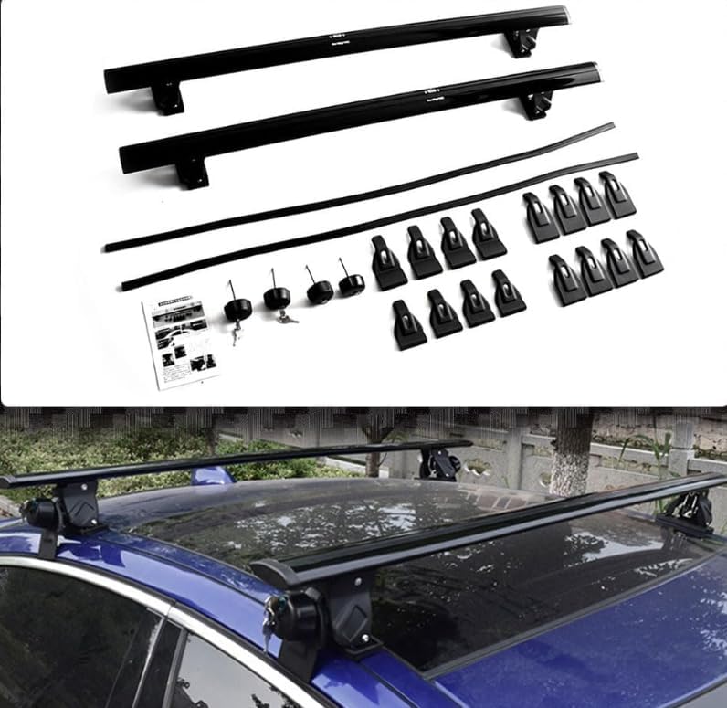 2pcs قضبان رف سقف الألومنيوم مع قفل سرقة للسطح متوافق مع أسطح النقاط الثابتة التي تناسب لكزس هي (أسود)