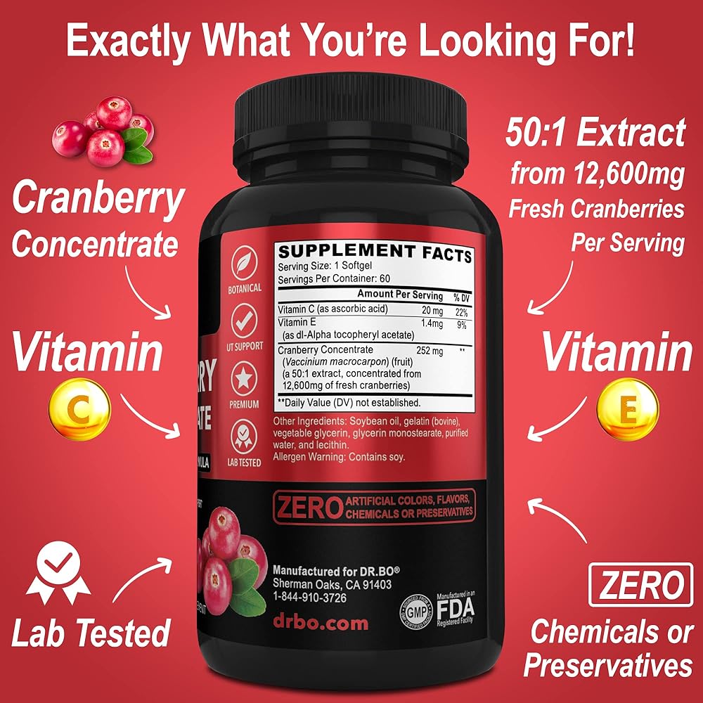 ممتاز - حبوب مركزة التوت البري ذات القوة الإضافية تكمل الصحة المناعية مع فيتامين C وE بالإضافة إلى مستخلص التوت البري في كل كبسولة هلامية ناعمة للتحكم الأقصى في المثانة ودعم صحة التهاب المسالك البولية.