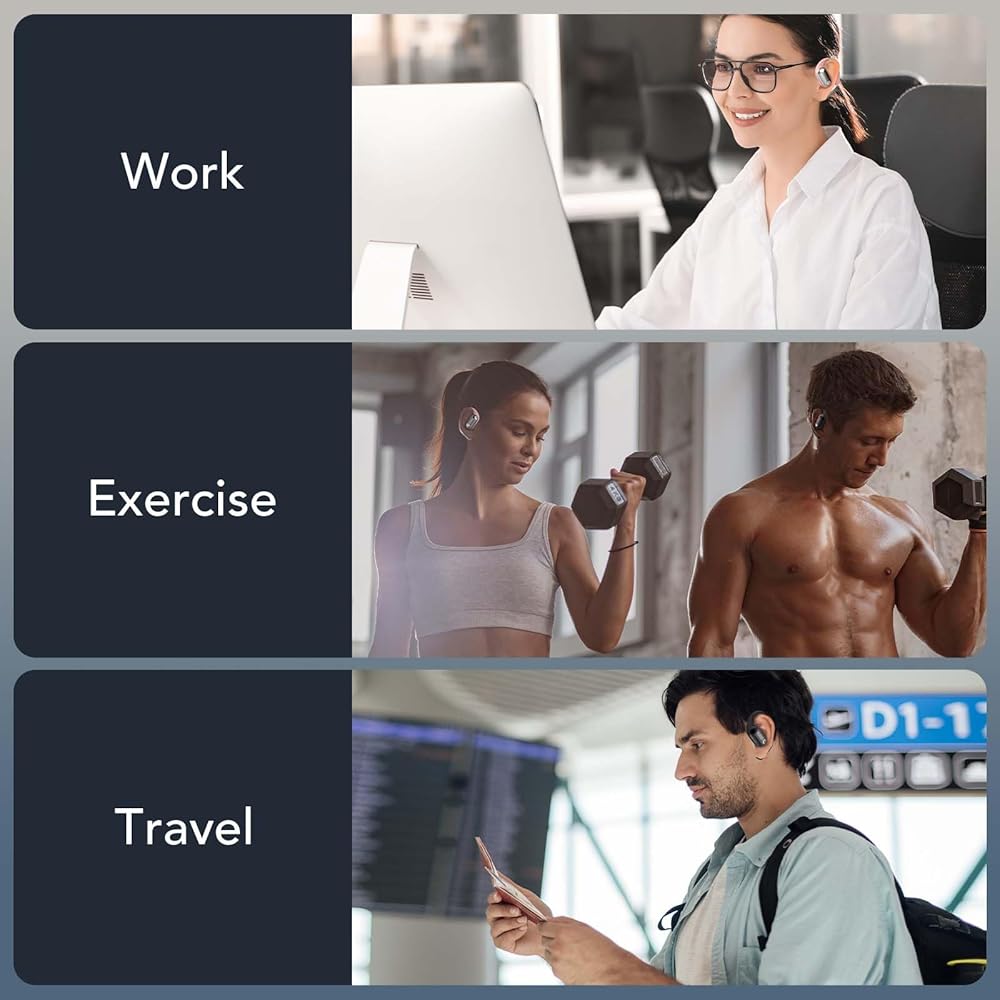 تصميم الأذن المفتوح من أجل الوعي في العالم الواقعي-ابق على اتصال بالمناطق المحيطة بتكنولوجيا الأذن المفتوحة ، أو مثالية للتنقل الحضري أو الجري أو ركوب الدراجات. تضمن ميكروفونات إلغاء الضوضاء المزدوجة مكالمات واضحة دون منع الصوت المحيط