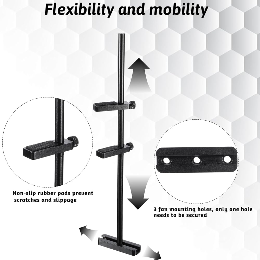 Fan Mount Compatibility: Designed for fan mounting, the GPU Bracket Brace securely attaches to your case fan without obstructing airflow. The base includes a rubber pad to prevent slipping and scratching. Note: Screws are provided, but compatibility may vary with certain fan models due to market diversity