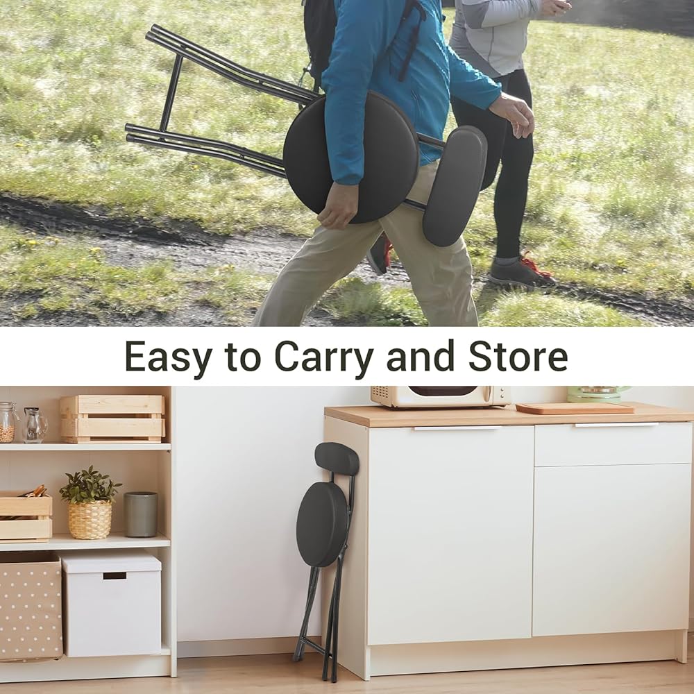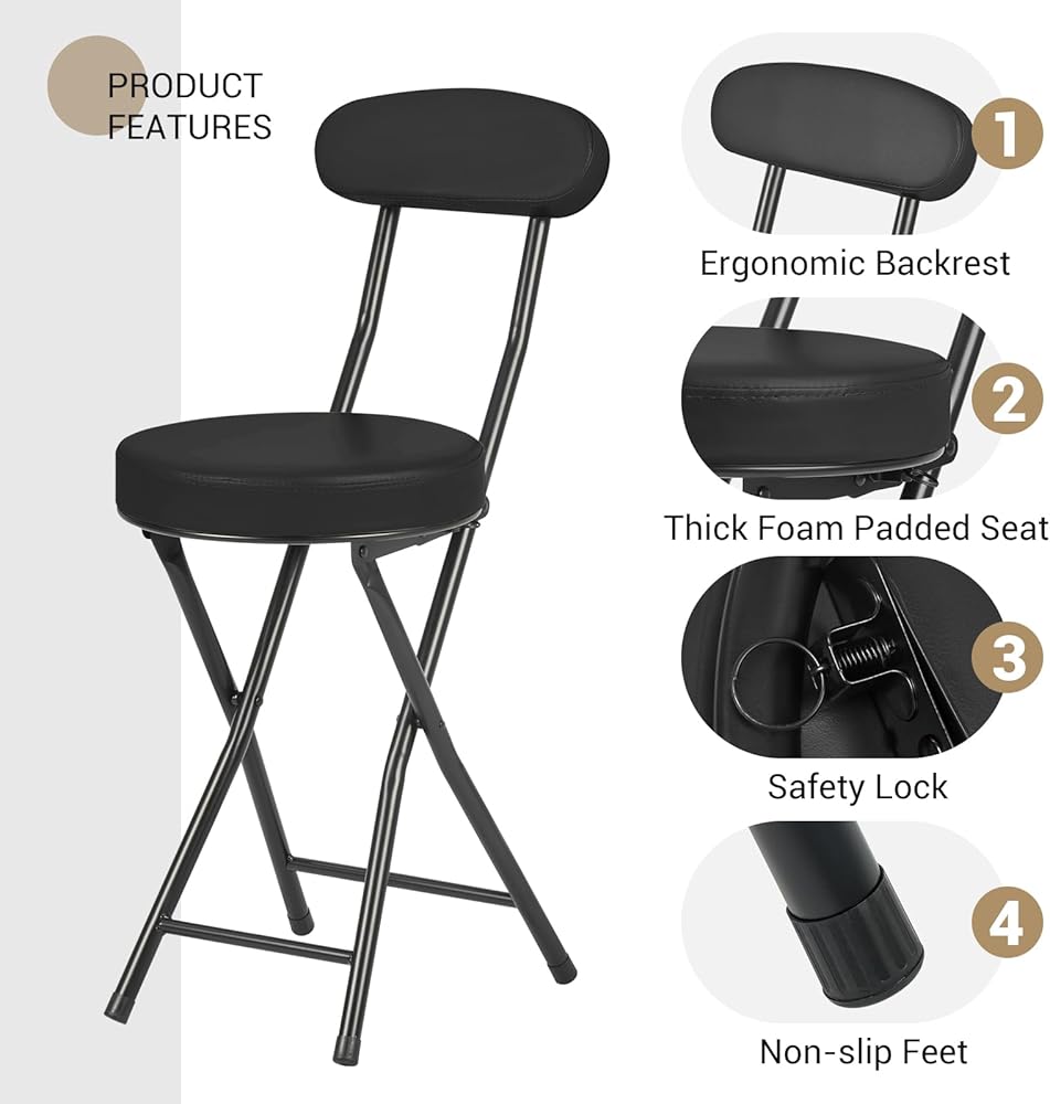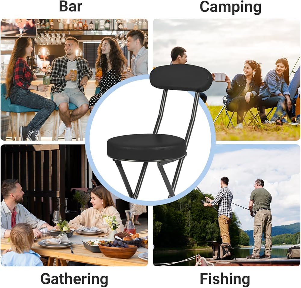 • تصميم أنيق ومريح: يوفر هذا البراز القابل للطي مع الظهر راحة فائقة للجلوس الممتد. يضمن المقعد المبطن المبطن ومسند الظهر الداعم تجربة مريحة ، مثالية لأي مناسبة.