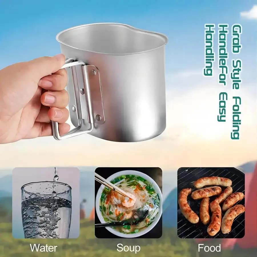 Made of food-grade aluminum, it ensures hygiene and health, with a large mouth helical design that is 100% drip-free. The kit is a valuable addition to your outdoor adventure and survival gear due to its durability and versatile uses.