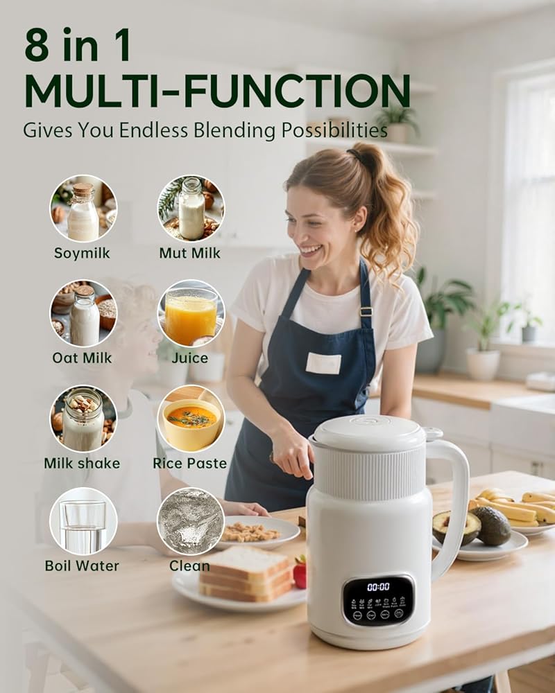 8 في 1 آلة صانع الحليب الجوز ، 32 أوقية خلاط لصناعة الحليب الصويا التلقائي لللوز والشوفان وجوز الهند والزائد النباتية وغير الألبان مع تأخير بدء/غلي الماء/الحفاظ على الدفء