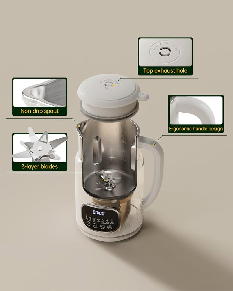 【تأخير ذكي على مدار 24 ساعة】 استمتع بالمرونة النهائية! تحميل مكونات على راحتك ، وقم بتعيين الموقت على مدار 24 ساعة ، واستيقظ أو العودة إلى المنزل لحليب الصويا المعدة حديثًا ، أو معجون الأرز الساخن ، أو الماء المغلي الجاهز للاستخدام-مثالي لأنماط الحياة المزدحمة.