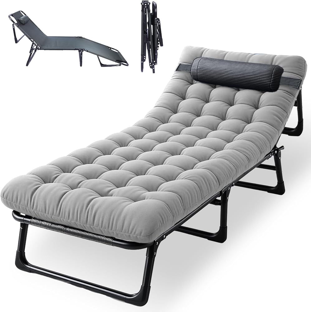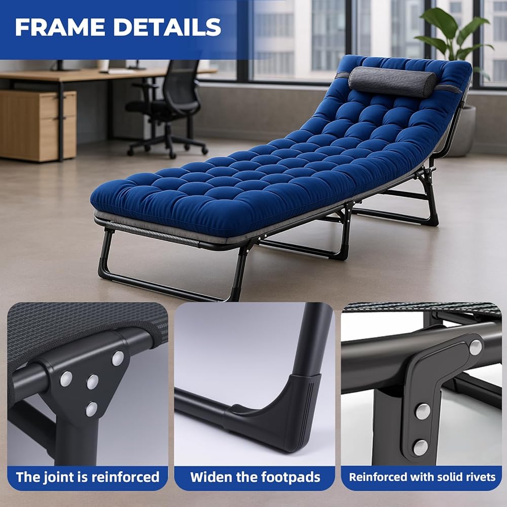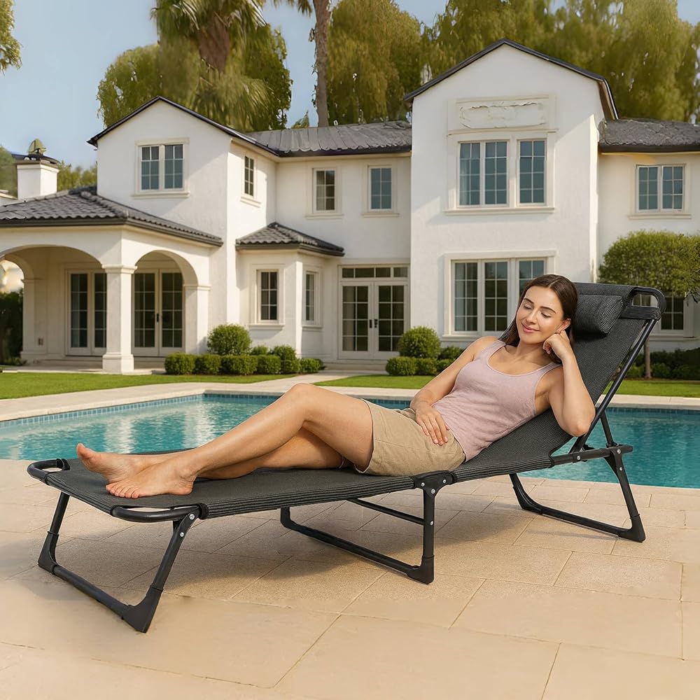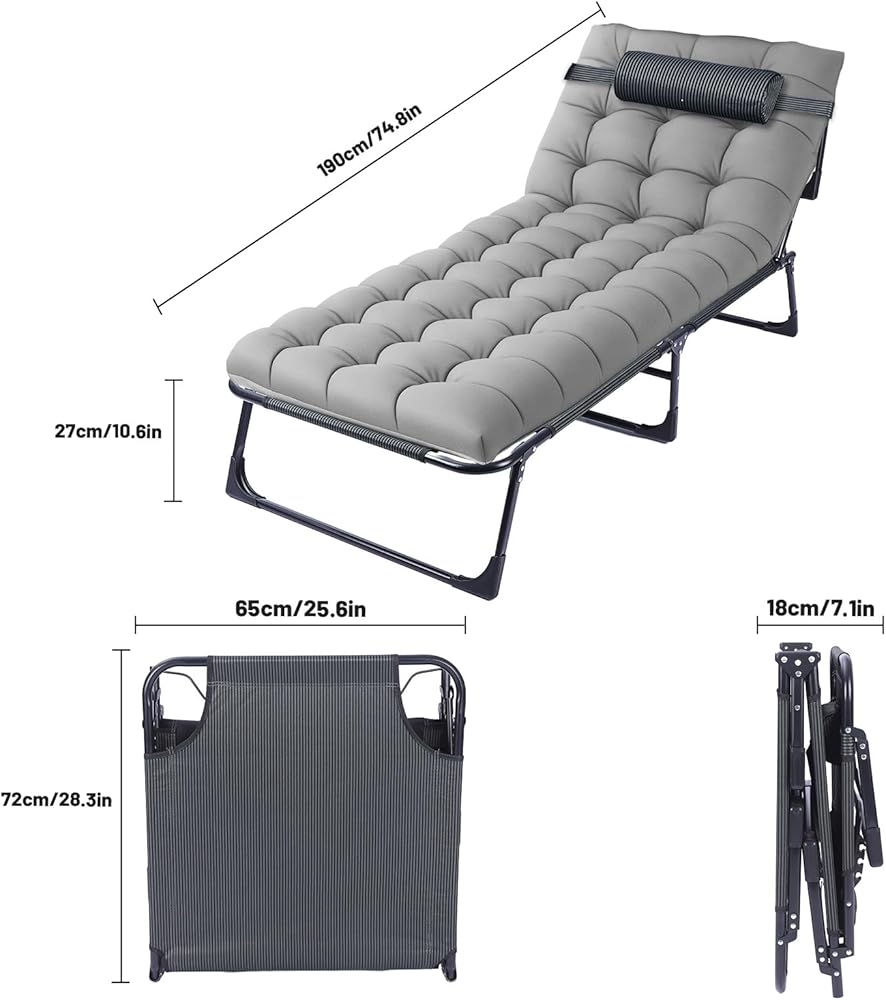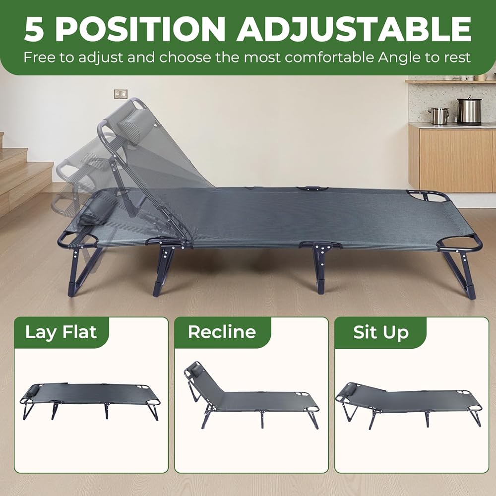 4 POSITIONS ADJUSTABL: Our heavy duty portable camping bed come equipped with a 4-position locking system, offering versatility for your comfort. سواء كنت تفضل الجلوس في وضع مستقيم أو تولي أو وضع مسطحًا ، يمكنك بسهولة العثور على الموضع المثالي لتناسب احتياجات الاسترخاء الخاصة بك.
