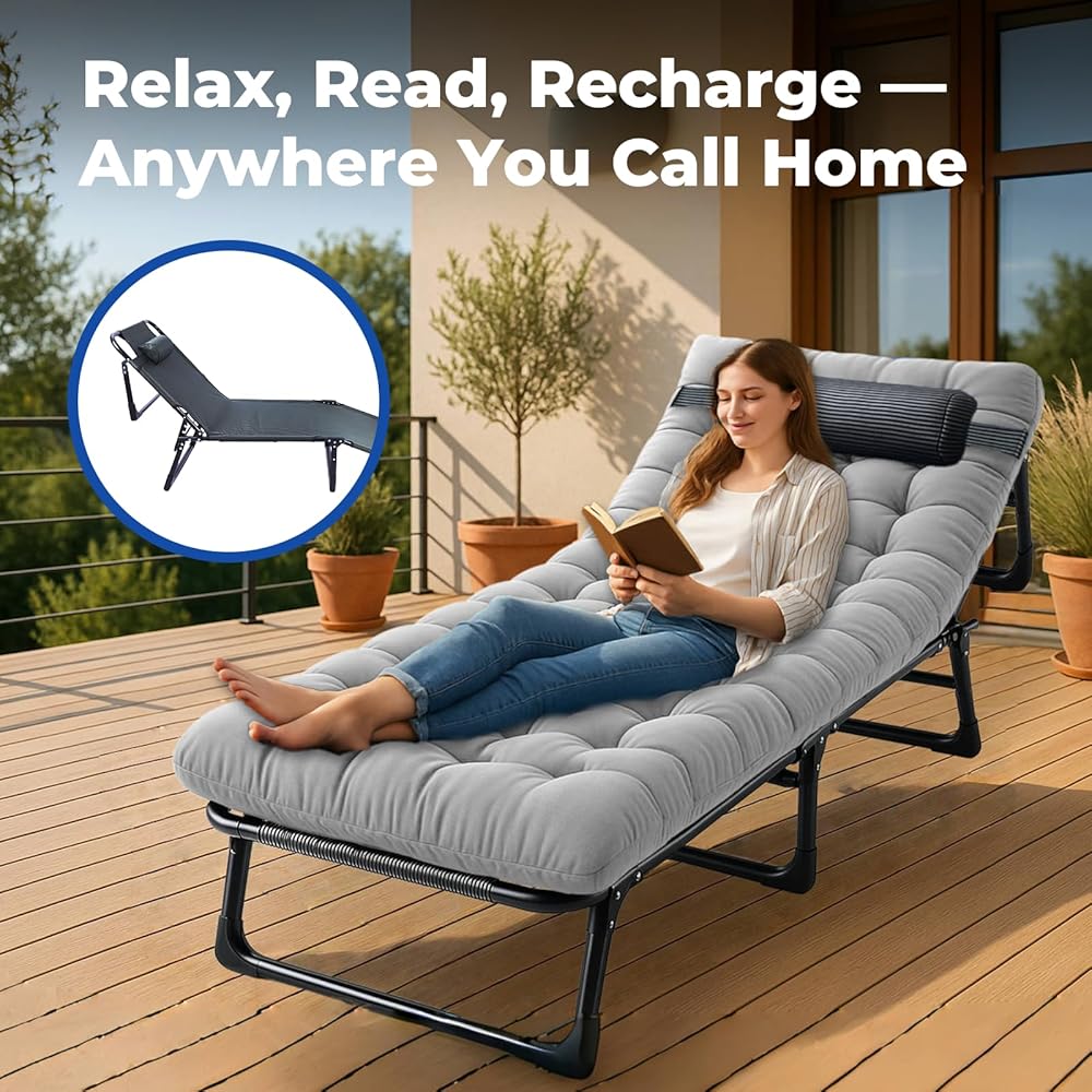 CREATED FOR A COZY RETREAT: Our camping cot offers the ideal blend of firm and soft support, crafted with an ergonomic design that alleviates muscle tension and stress. The detachable pillow is another thoughtful touch, allowing you to adjust it up and down or remove it entirely, catering to your personal comfort preferences.