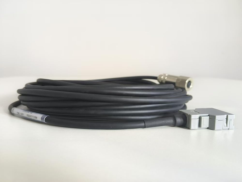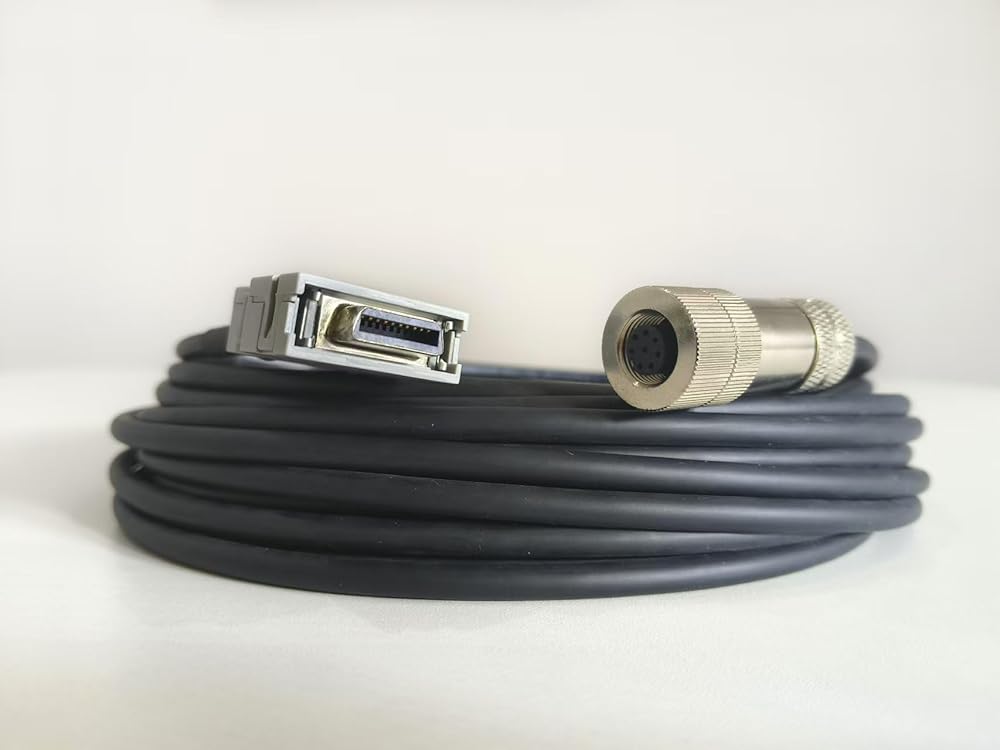 This high-performance Drive-CLIQ signal cable features a robust 12-wire configuration with tinned copper wire construction, perfect for industrial automation applications. The cable comes with an RJ45 connector and measures approximately 197 inches in length, offering reliable connectivity for your automation needs. With a 6x2x0.25 strand configuration and 300V rating, this cable provides stable signal transmission in demanding environments. The black outer sheath, measuring 0.43 inches in width and height, protects the internal components while maintaining flexibility. Operating temperature range spans from -20°C to 80°C, making it suitable for various industrial settings. The cable's design allows for both static and dynamic deployment, with a minimum bending radius of 10mm for fixed installations. It can withstand up to 100,000 bending cycles when properly installed in cable carriers, with a maximum traversing velocity of 30 meters per minute. This professional-grade cable is manufactured in China and comes individually packaged in a moisture-proof plastic bag for protection during shipping and storage.