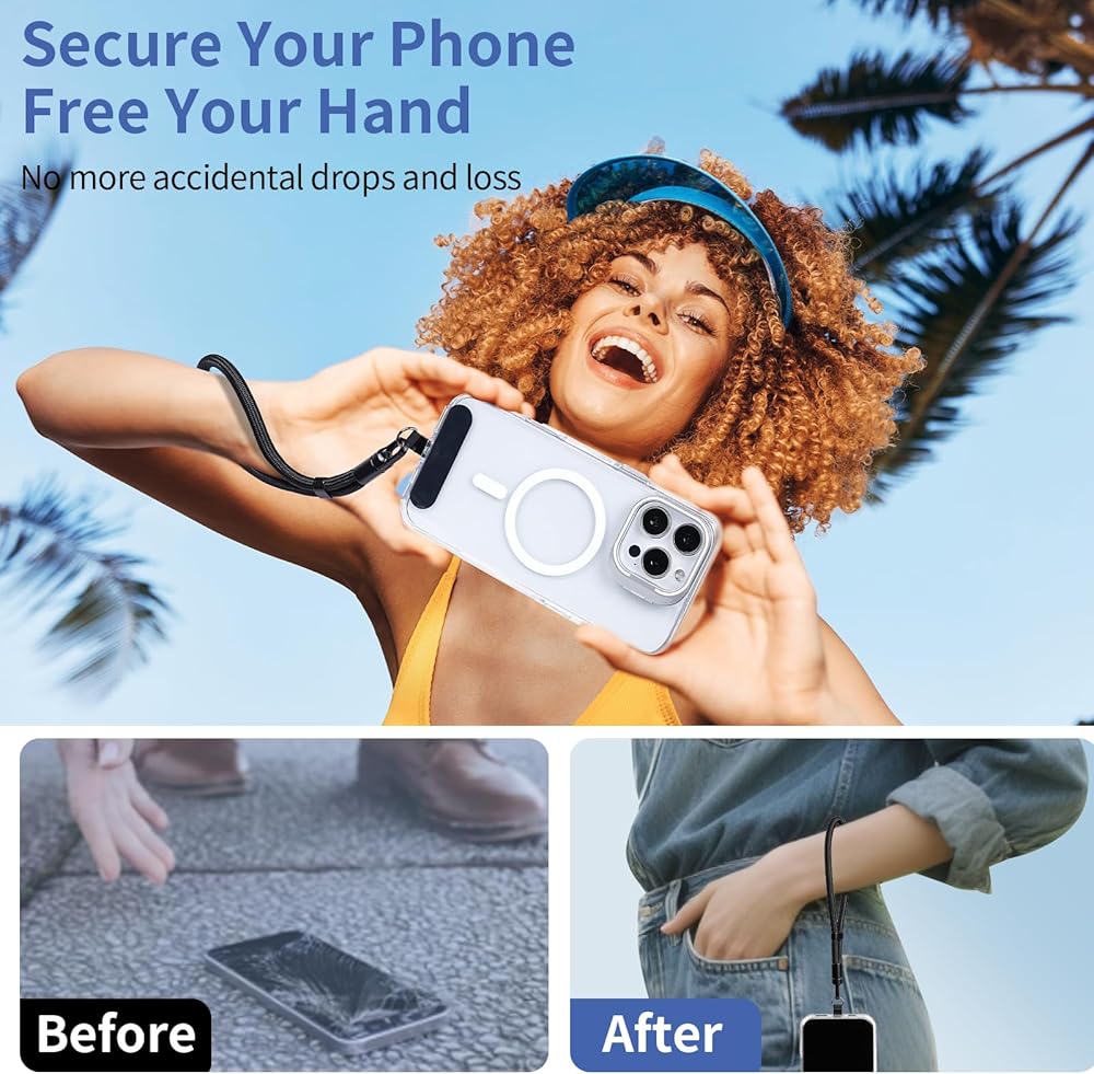 • 【Not Blockcharging Port】: The phone tether tab is very thin and light and the universal cell phone chain does not block your charging hole,Compatible for both corded and wireless charging without being removed.