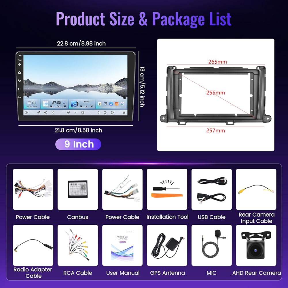 [Vehicle Compatibility]: This car radio is specialized for Toyota Sienna 2011-2014, including the custom frame kit and dedicated wiring harness, ensure you can install and use this car stereo smoothly. Please check the pictures to confirm fitment issues before purchasing, if you are unsure please ask us.