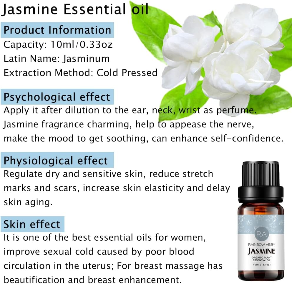 ضعيه بعد تخفيفه على الأذن والرقبة والمعصم كعطر. حيوية رومانسية وهادئة، عطر الياسمين الساحر، يساعد على تهدئة الأعصاب، ويجعل المزاج مهدئًا، ويمكن أن يعزز الثقة بالنفس.