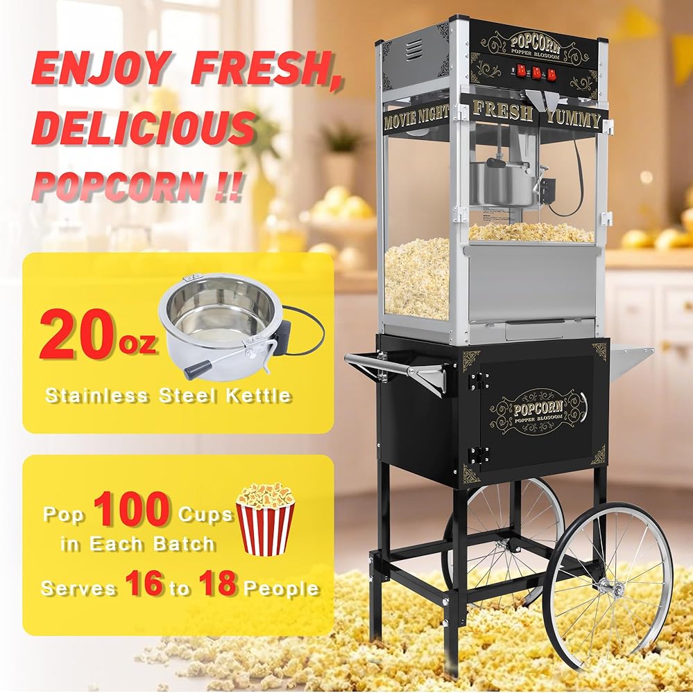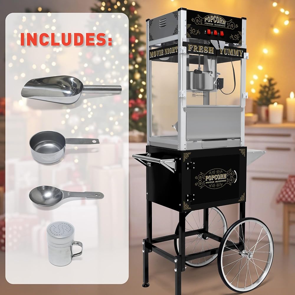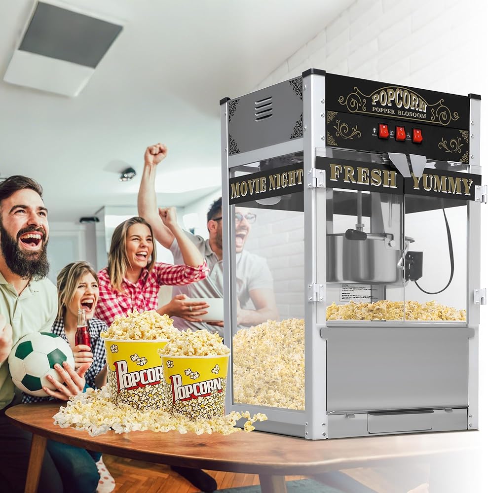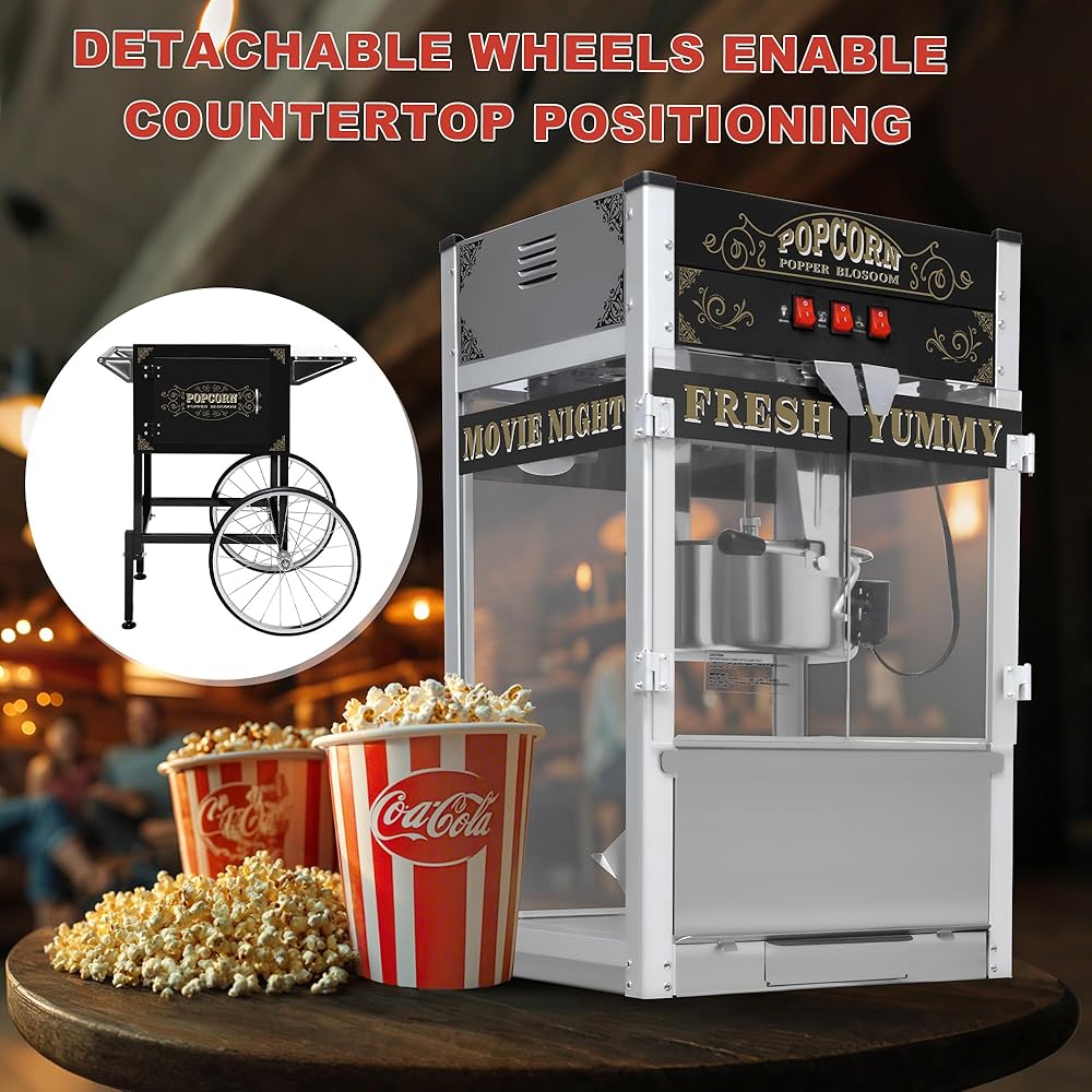التصميم الرجعية والأنيق: تتميز آلة الفشار التجارية هذه بتصميم خالد يثير سحر عتيقة الآلات العتيقة ويضيف إحساسًا بالسينما القديمة إلى أي مساحة. إنه مثالي لجلب أجواء حنين ورائحة المسرح إلى أي حدث أو حفلة. إنها ليست فقط قطعة عملية من معدات المطبخ ، ولكنها أيضًا زخرفة أنيقة تضيف الحنين إلى الحنين والمعالم البصرية إلى منزلك أو مساحتك التجارية