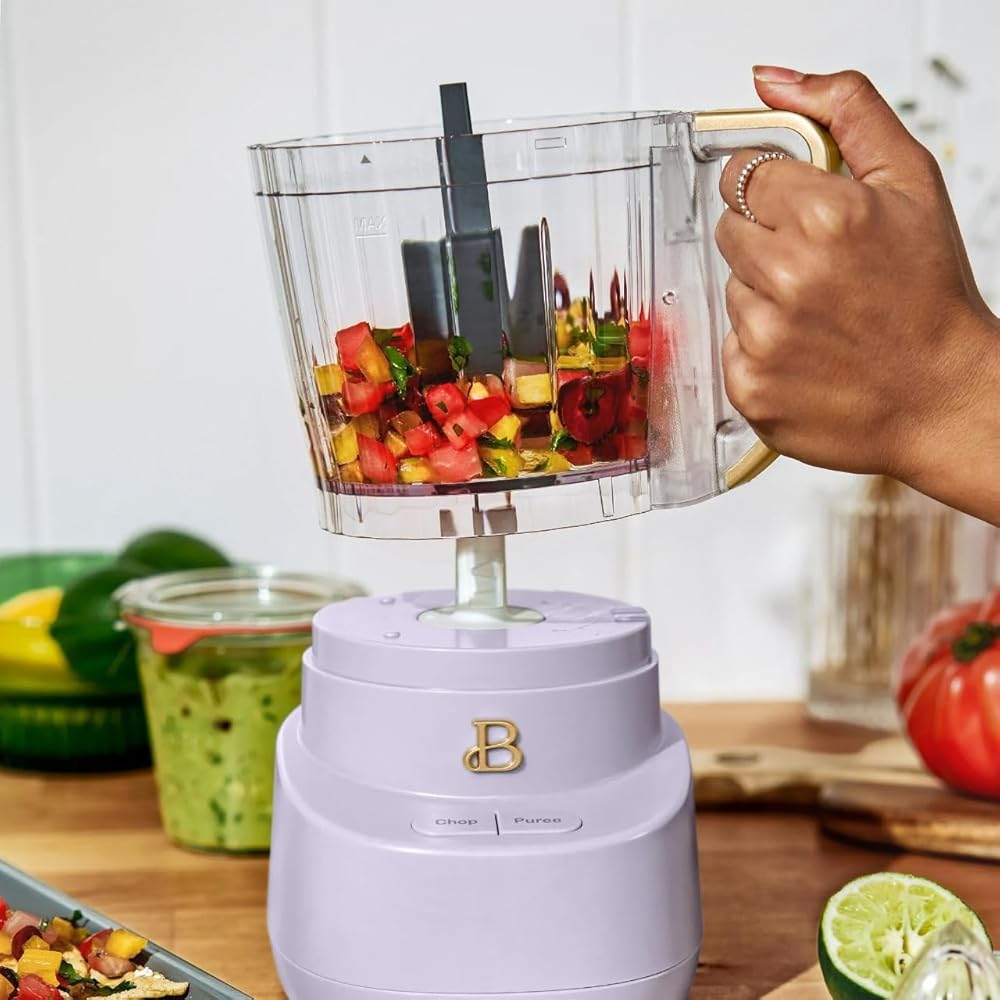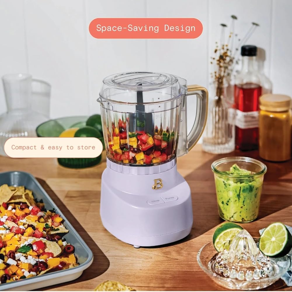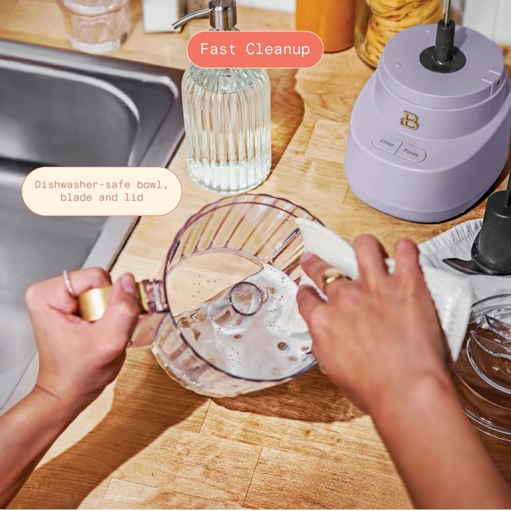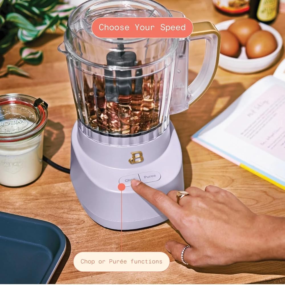 The Beautiful 3-Cup Food Chopper in White Icing by Drew-Barrymore brings high-performance versatility and elegant style to your kitchen. Designed to simplify your meal prep routine, this compact food chopper is equipped with a durable stainless steel blade housed in a 3-cup capacity glass bowl, ideal for finely chopping, dicing, and blending a variety of ingredients. Whether you're preparing salsas, dips, sauces, or simply chopping garlic and herbs, the touch-activated pulse control allows for precise texture control with one-hand operation. Its compact size is perfect for smaller kitchens, apartments, dorms, or RVs, yet powerful enough to handle everyday chopping needs. The modern white icing finish with gold accents complements any kitchen décor, while the included BPA-free splash guard and dishwasher safe components ensure easy cleanup after every use. This mini processor features a non-slip base that keeps it stable during operation, enhancing safety and convenience. The elegant glass bowl not only adds aesthetic appeal but also resists stains and odors. Ideal for gifting, this food chopper makes a wonderful addition to any home cook's collection. From onions and tomatoes to nuts and fresh herbs, enjoy fast and efficient food prep in a stylish package. The Beautiful 3-Cup Food Chopper combines form and function to deliver beauty and performance with every chop.