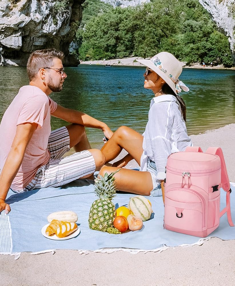 Long-Term Insulation: The soft cooler backpack features insulated thickened foam and a leakproof liner, ensuring excellent insulation performance. When ice cubes are added, it keeps your drinks and food hot, fresh, or cool for up to 16 hours—perfect for a day trip. Whether you're heading to the beach, on a picnic, hiking, or traveling, this beach bag backpack is ideal for keeping your items cool and organized. Also great for camping, boating, outdoor games, and work.