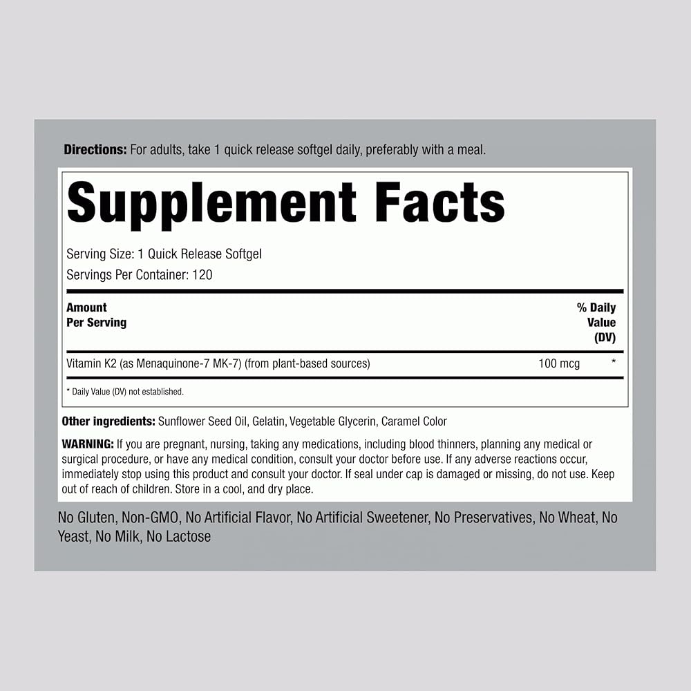 Piping Rock's Vitamin K-2 هو مكمل عالي الفعالية يقدم 100 ميكروغرام من الشكل المتوفر بيولوجيًا لفيتامين K-2، والميناكينون في كل كبسولة هلامية سريعة الإصدار وخالية من الغلوتين. يتم استخراج الميناكينون من نوع فريد من الصويا يُعرف باسم "ناتو" في اليابان ويوفر توافرًا حيويًا وامتصاصًا فائقين لهذا الفيتامين. ** احصل على زجاجة من فيتامين K-2 من Piping Rock وتحكم في صحتك بالطريقة الطبيعية.