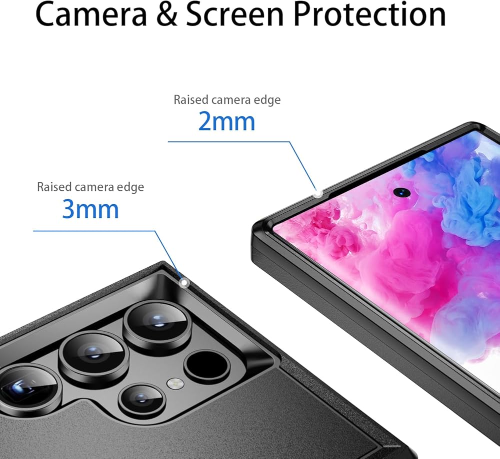 الشفاه المرتفعة والحافة تبقي الكاميرا والشاشة آمنة. مزيج من TPU و polycarbonate للحماية المزدوجة من القطرات والخدوش