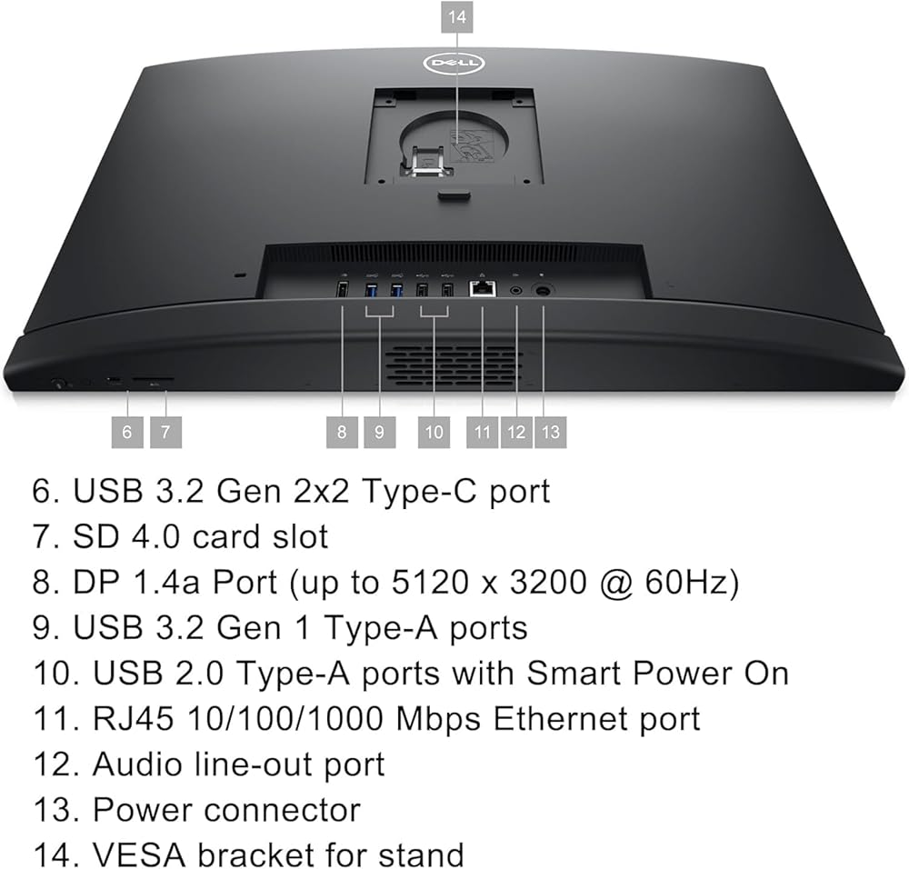 Rear Ports: 2x USB 3.2 Gen 1 Type-A Ports | 2x USB 2.0 Type-A Ports with SmartPower| RJ45 Ethernet port | 1x Line-out audio port | 1x DisplayPort 1.4a (up to 5120 x 3200 @ 60Hz)
