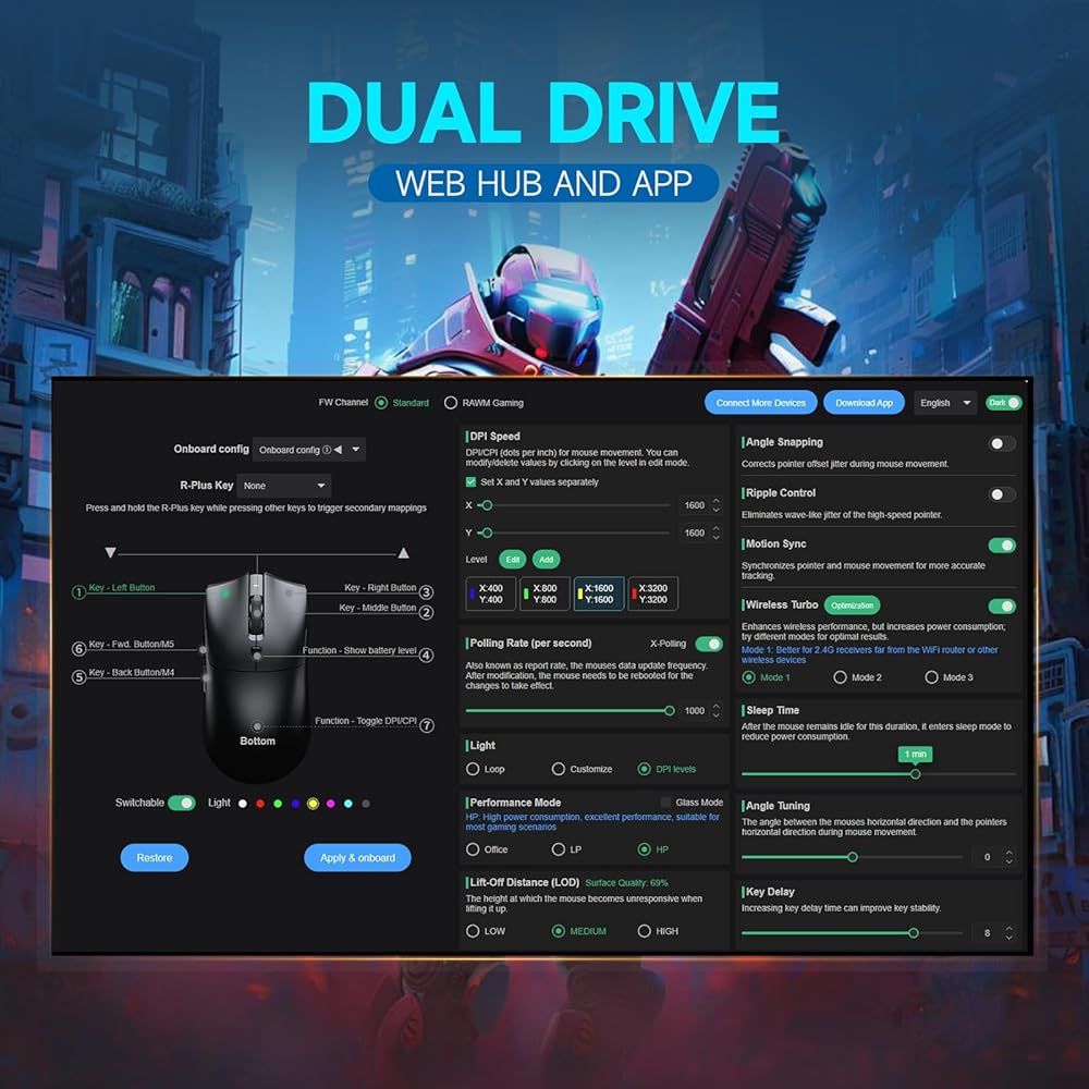 MODE Crazy Gaming+ - ترقية إصدار البرنامج الثابت ، افتح وضع الألعاب+ في ألعاب RAWM ، 20000+ إطارًا في الثانية (إطارات في الثانية) في دقة البندقية الثابتة ، مما يجعله أكثر استجابة وأداء أعلى في ألعاب FPS