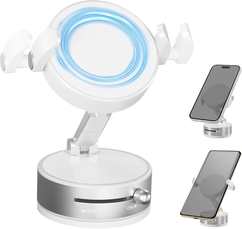 【360 درجة ، يتميز التناوب وتصميم ثنائي المحور】 بتركيب الهاتف المغناطيسي الشفط مع هذه القاعدة بزاوية 360 درجة وأذرع معدنية قابلة للطي بنسبة 210 درجة من أجل تعديلات الزاوية دون جهد بين أوضاع الصورة والمناظر الطبيعية. يقوم تصميم الطية المدمج بتبسيط التخزين ويبقي منطقتك أنيقًا عند عدم استخدامه.