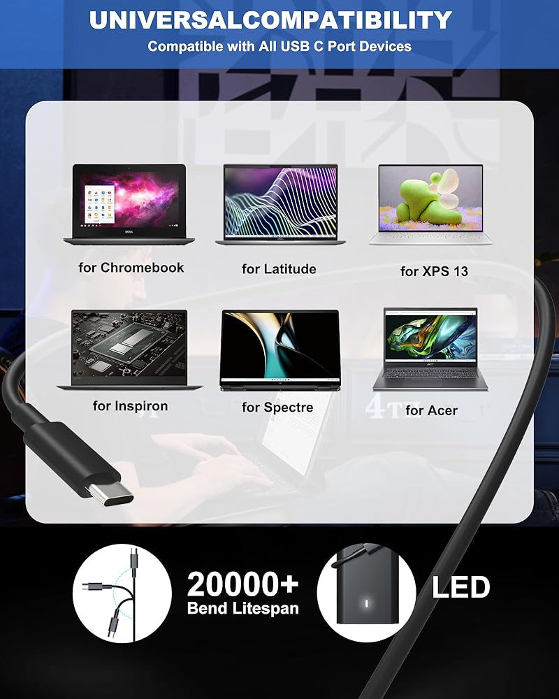 【Powjdwz 65W USB C محول الطاقة】 متوافق مع Inspiron 14 7420 7425 7415 7430 5406 5420 5425 5280 5310 5410 5418 5481 5482 5582 7300 7390 7400 7490 7630 5320 5635 سلسلة ، متوافقة مع Chromebook 3100 3500 3400 3300 3380 5300 5400 5500 7200 7300 7400 7486 5190 3110 Series