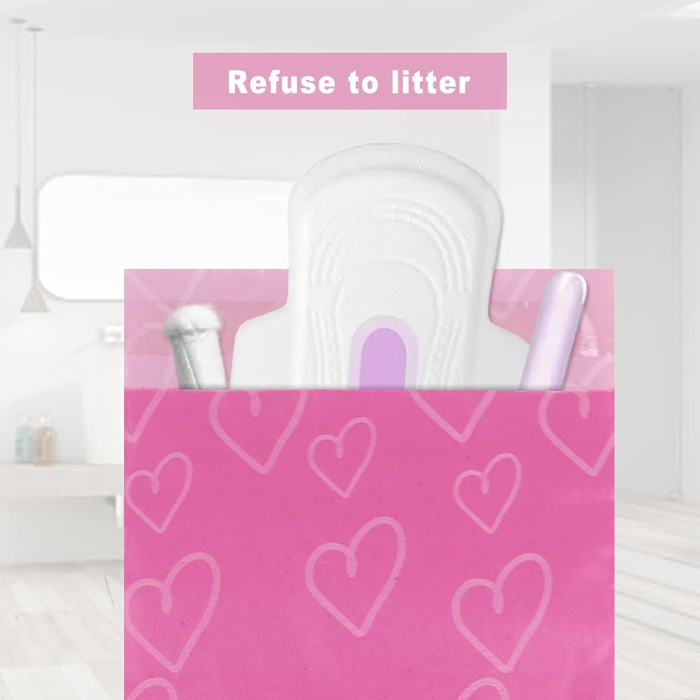 • 🚮HIDDEN PERSONAL ITEMS DISPOSAL ➫ feminine hygiene bags are designed for women, pink is pretty and playful, they are perfect for concealing your tampons, whether at home or outdoors. They are more suitable than wrapping in newspaper napkins, keeping clean is respectful of others and yourself.