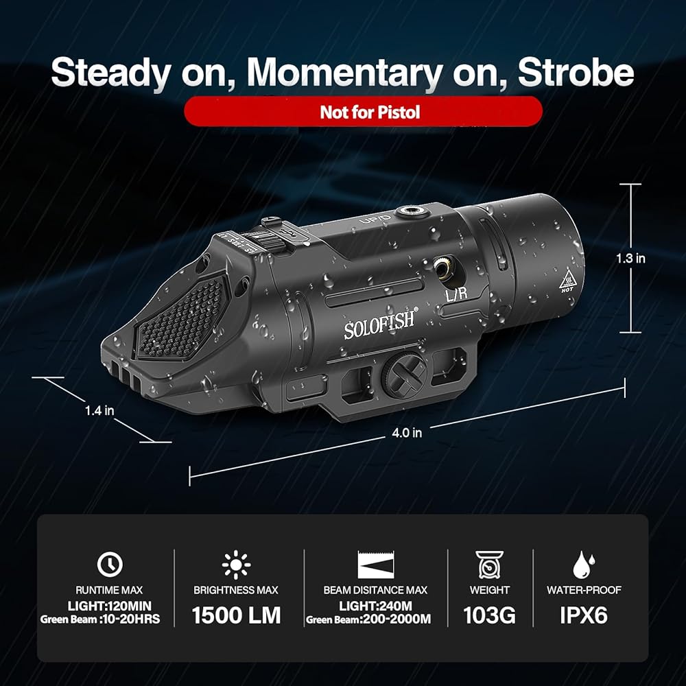 - 4. ثلاثة أوضاع تكتيكية: ثابتة/إيقاف (ضغط واحد) ، ستروب (ضغط مزدوج) ، لحظة (اضغط والعقد)